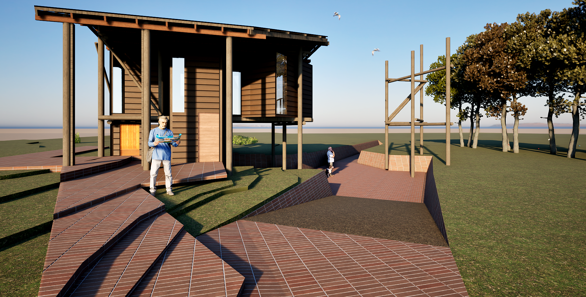 Este trabajo de renderización fue realizado en un plazo de 6:00 horas, utilizando Twinmotion a partir de un modelo base en Revit. El proyecto forma parte de la misma línea investigativa que el Atelier del Teatro, donde Mishki ha desarrollado parte de la pedagogía vinculada al sistema de tapial complejo, mediante metodologías colaborativas.